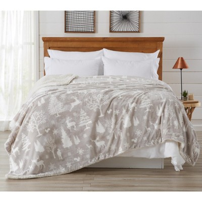 Great Bay Home Kinsley Velvet Plush Sherpa Bed Blanket Full Queen Soft Taupe Pale Grey Buffalo Check Target